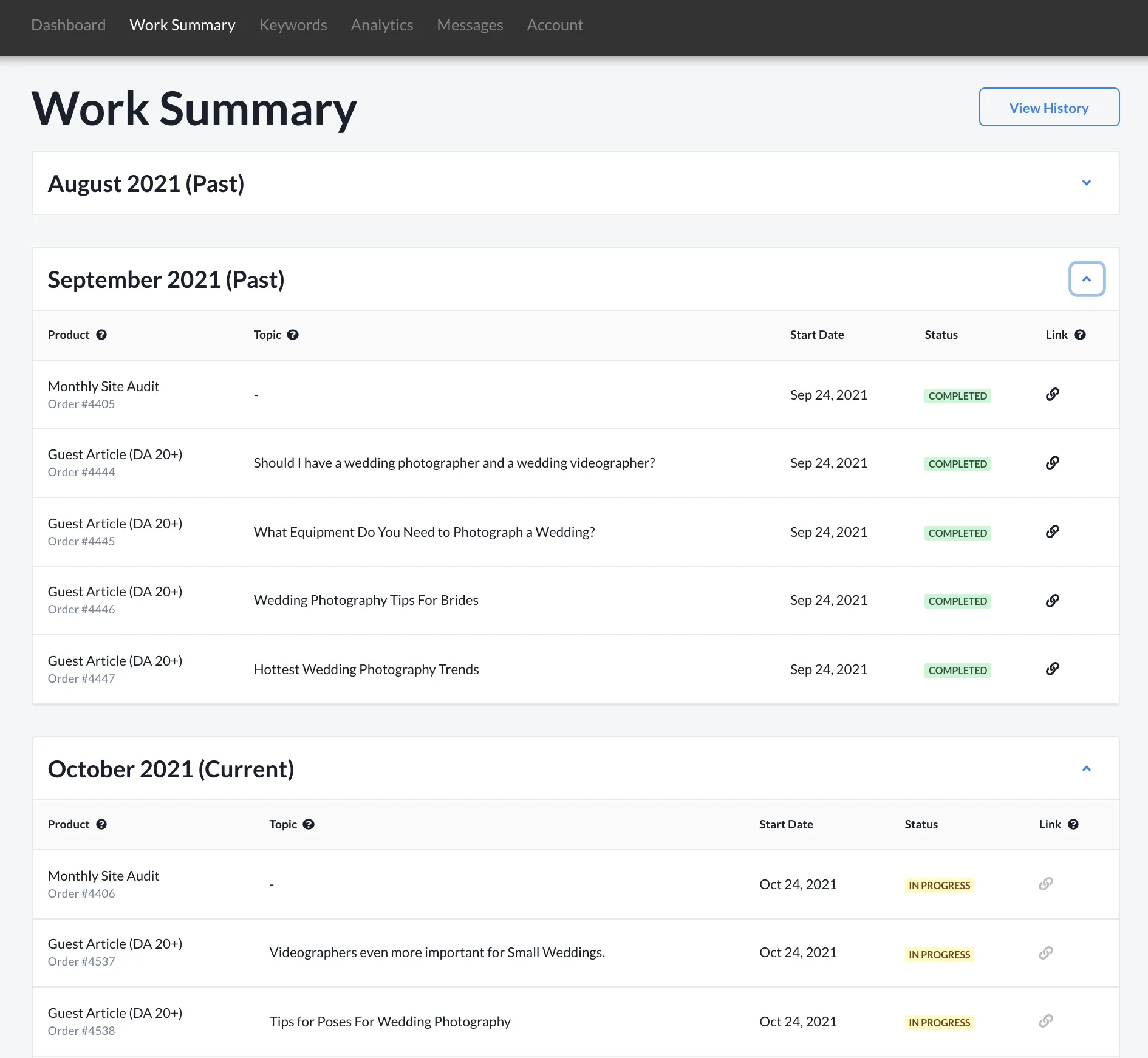 Authority is given to you by other websites. They give you website a vote by linking to your website. Not every link is created equal. We want to focus on high domain authority, quality, relevant links. A link isn’t just a link. Avoid PBNs(private blog networks), blog comment spamming and non-contextual linking. We create quality content and do outreach to real websites with value. The content topics are also outlined in the Content Calendar we create at the beginning of your campaign.